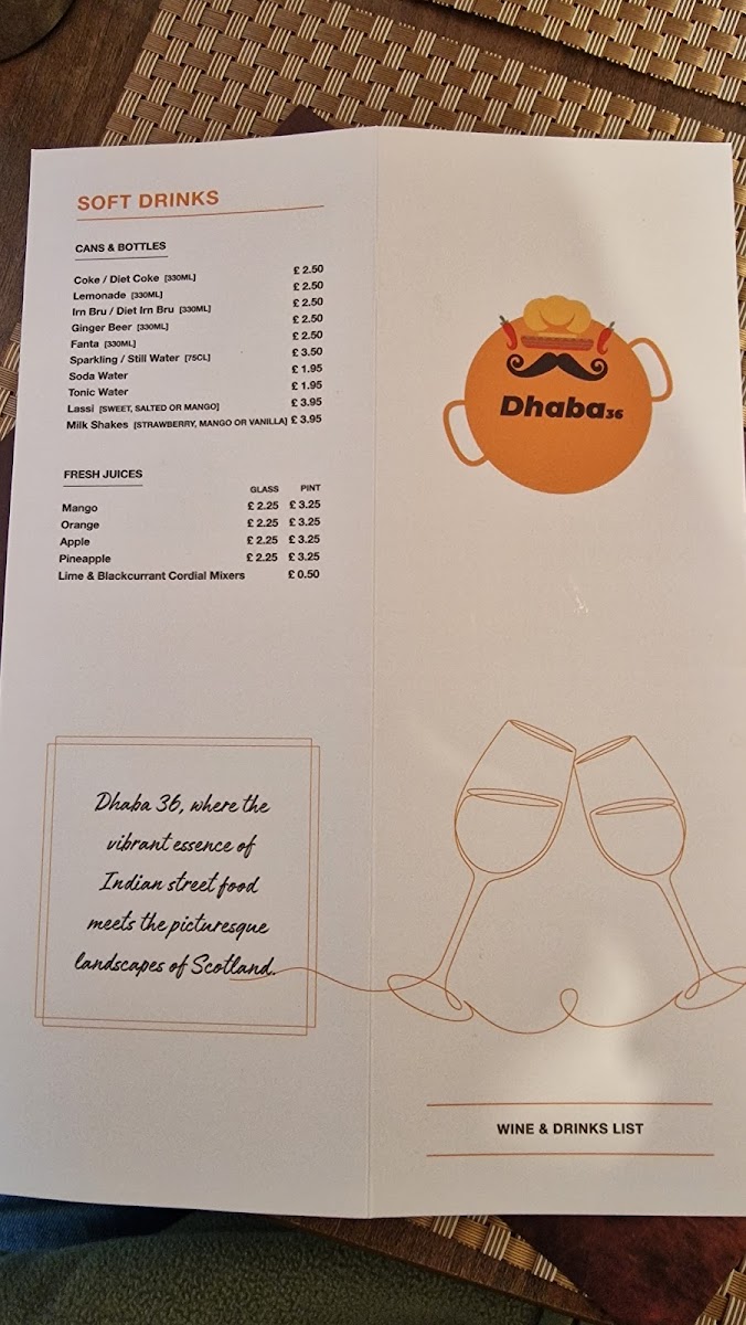 From a reviewer’s perspective, the menu at Dhaba36 Balerno offers a concise yet inviting selection that balances classic Indian-inspired beverages with familiar refreshments. For those seeking warmth, options like Chai, Earl Grey, Peppermint Green, and Espresso provide comforting choices to start or end a meal. Fans of traditional Indian drinks will appreciate the Lassi in Mango, Sweet, or Salted varieties, each promising a rich, creamy flavor. The menu also caters to sweet cravings with Shakes available in Mango, Strawberry, and Vanilla, offering a smooth and refreshing treat. For lighter, chilled options, a range of Cold Drinks including Coke, Diet Coke, Irn Bru, Diet Irn Bru, Fanta, and Sprite ensures something for every preference. While the selection leans towards simplicity, the carefully curated choices emphasize familiar flavors executed well, making it a comfortable, approachable menu that complements the overall dining experience at this Balerno spot.
